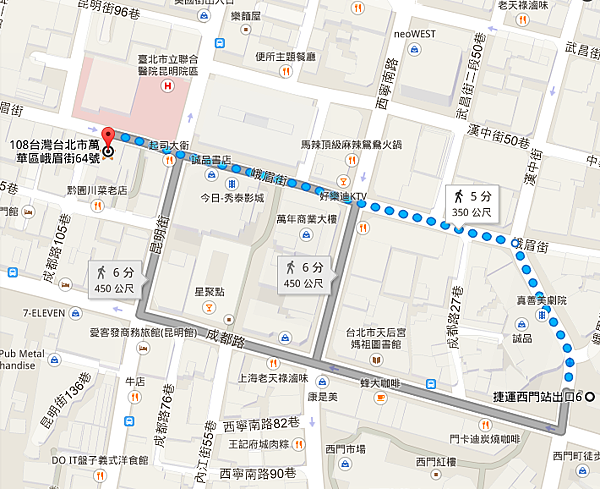 從西門捷運站6號出口走到「Let’s Hair 西門店」只要5-8分鐘,